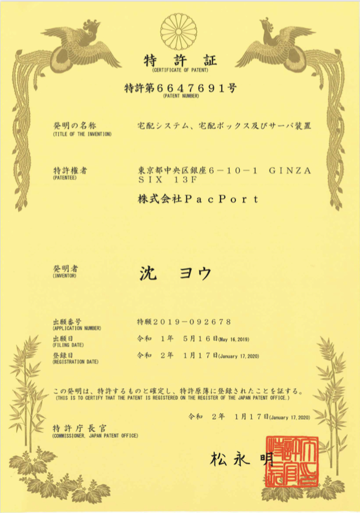 このたび、当社が出願しておりました 【宅配システム】および、【宅配ボックス及びサーバ装置】について、以下のとおり特許を取得したことをお知らせいたします。